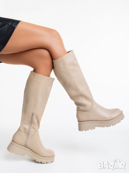 ЗИМНА РАЗПРОДАЖБА! Дамски модни ботуши в бежов цвят на платфотма олекотен модел
