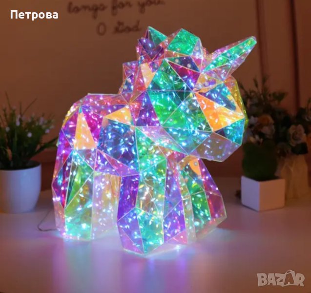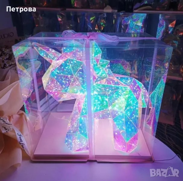 Направете незабравим подарък или декорирайте дома или офиса по уникален начин,с новия хит на пазара-светещ/холографен еднорог. Еднорозите са изработени от холографско PVC фолио и LED светлини. Цветовете им се сменят чрез приложение което сваляте на вашият телефон чрез QR код, който може да намерите на USB кабел който е включен към всеки комплект.