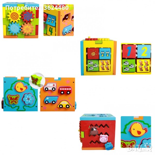 Детско дървено образователно кубче – сортер е боядисано в свежи цветове с бои на водна основа, които са напълно безвредни.