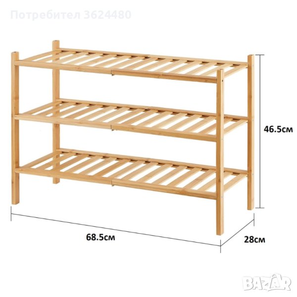 Изработен от висококачествен бамбук, този стелаж предлага здравина и издръжливост.
