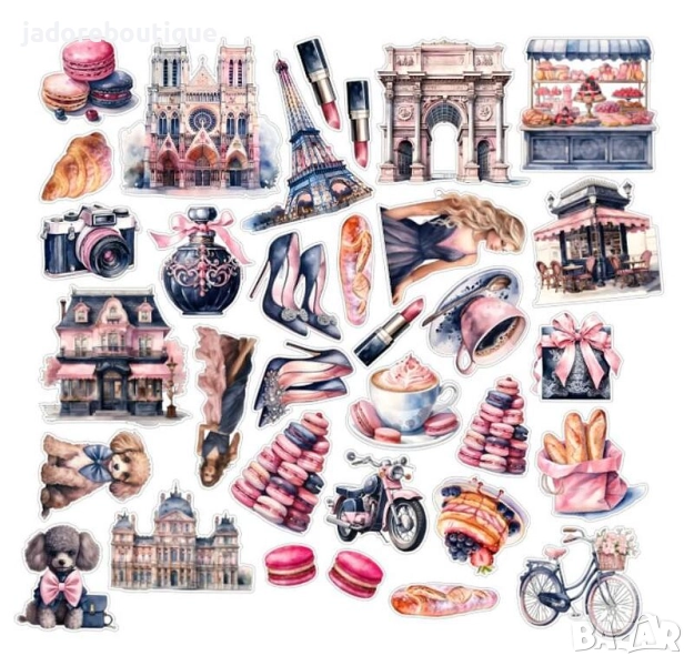 Дизайнерски скрапбук стикери различни теми Париж/ Италия/ Печива/ Къмпинг и други