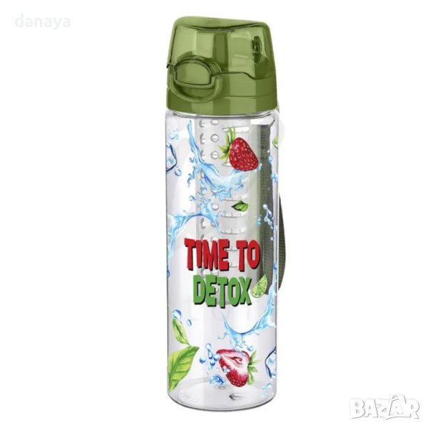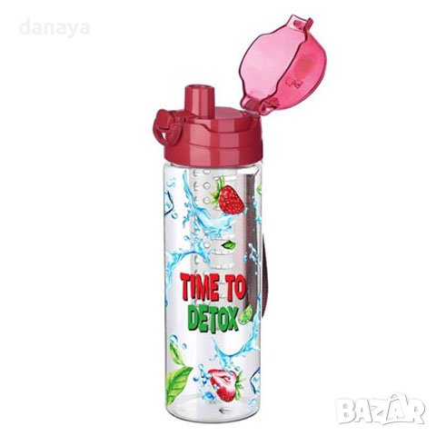Бутилка за вода Detox. Бутилка за вода или други течности с инфузер за плодове или зеленчуци. Удобна и практична за накисване на всякакви плодове, които ще обогатят Вашата напитка с освежаващ сок и витамини само за няколко минути. Просто добавете няколко парчета пресни плодове в специалното отделение и напълнете бутилката с вода.