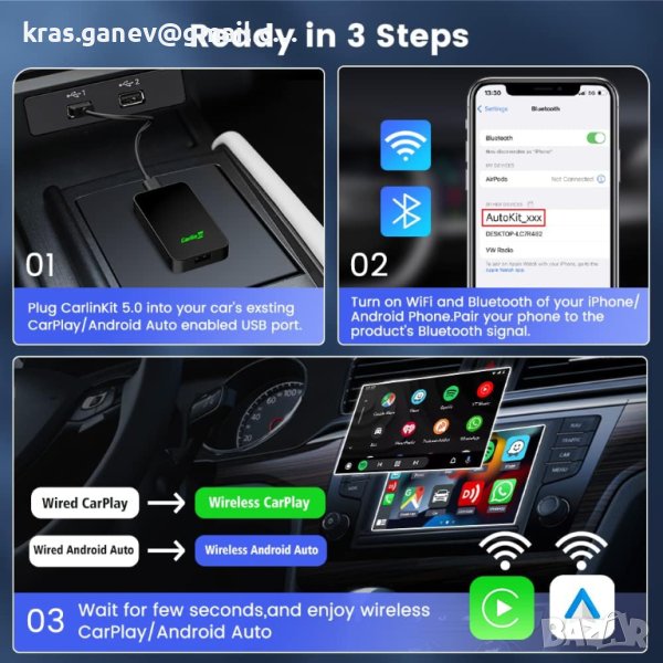 CarlinKit 5.0 CarPlay/Android Auto безжичен адаптер