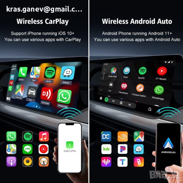 【Един продукт, две опции】CarlinKit 5.0 се предлага с двойна безжична система.Той поддържа преобразуването на кабелен CarPlay в безжичен CarPlay и също така поддържа преобразуването на кабелен Android Auto в безжичен Android Auto. Забележка: 1.) Ако вашият автомобил е оборудван само с кабелен CarPlay, тогава CarlinKit 5.0 не може да пренесе Android Auto във вашия автомобил. 2.) По същия начин, ако колата ви е оборудвана само с кабелен Android Auto, тогава CarlinKit 5.0 също не може да пренесе CarPlay в колата ви.