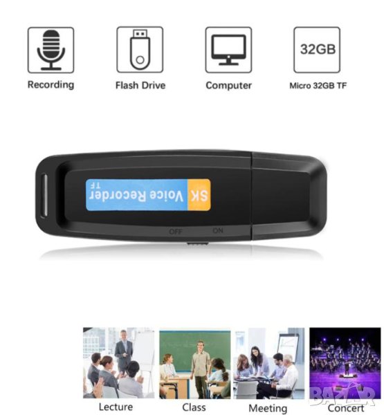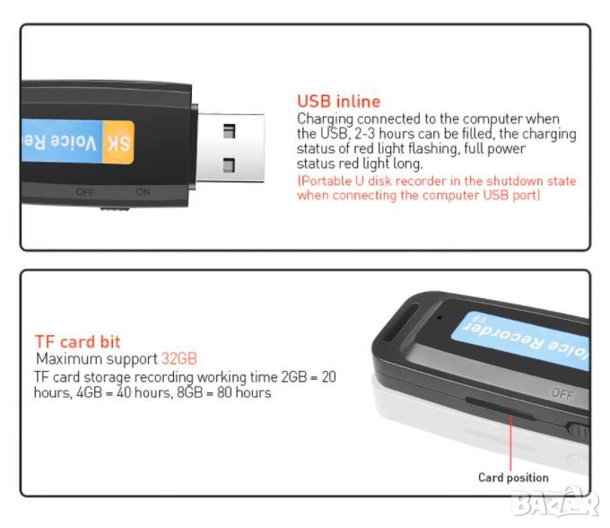 Flash Стик USB Диктофон Флашка Аудио Рекордер Ползващ MicroSD Карти до 32GB (без собствена памет)