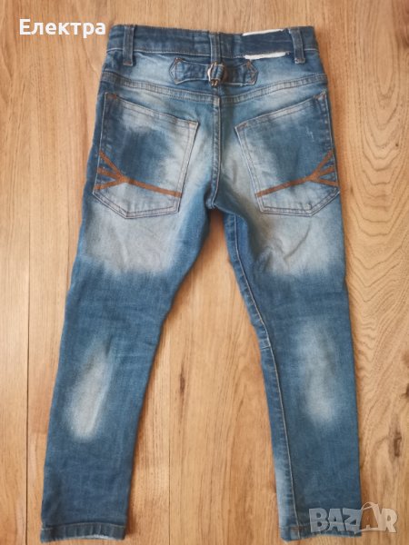 Модерни дънки Mango 5-6 год., с накъсан ефект. Отлично запазени, без забележки. Дължина-69см.