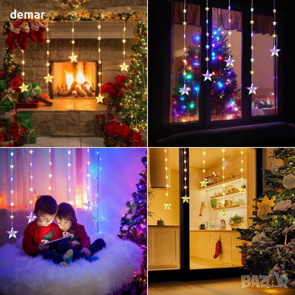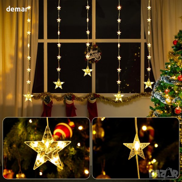 Водоустойчиви коледни светлини за прозорци със звезди 1,2м