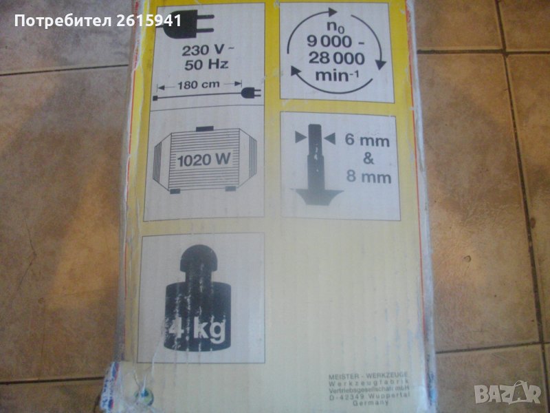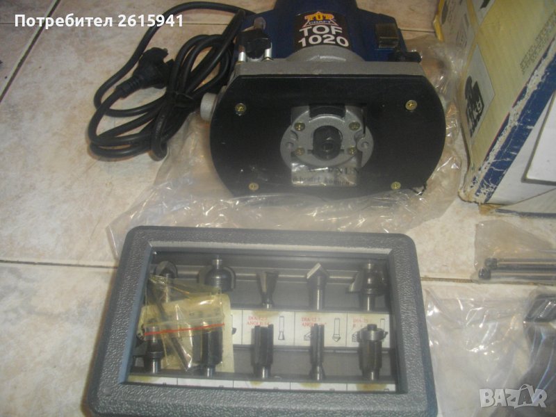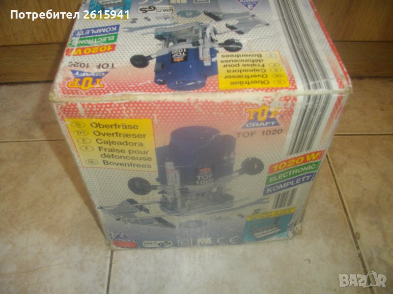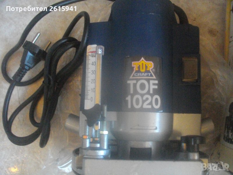 Цена на НОВА, неизползвана, пълен комплект с водачи, цанги, кутия фрезери и др.аксесоари - немска професионална оберфреза / челна фреза - 1020 вата - от старото качество - 2002 г. - TOP CRAFT TOF 1020 - цена 299 лв с пълния си комплект При споразумение за намаляне от цената вадя аксесоари, в зависимост от цена. ОПИСАНИЕ на елекрическа челна оберфреза - 399 лв с пълния си комплект. Марка и модел - TOP CRAFT TOP 1020 Electronic. ОРИГИНАЛНО немско произовдство старо качество 2002 г. на Meister Werkzeugfabrik Wuppertal GERMANY. Машината е съвсем нова ,неизползвана и неупотребявана. В отлично техническо/работно състояние. Мощност на мотора - 1020 вата ,скорост - 9000-28000 об/мин, регулация скорост - 6 стеепени. За фрезери размер опашка ф 6 мм и ф 8 мм. В комплекта освен машината са вклчени двете оригинални цанги 6 м и 8 мм, притягащата гайка, кутия оригинална на марката немска с оригинални 10 бр. различни размери и типове фрезери DIA 6 mm с размери 12,7 мм, 22 мм, 25 мм. Ключ оригинален шестограм/шестостен. Водача на основата с металните тръби. Конектор пластмасов прозрачен прахоуловител за скачване с маркуч на строителна прахосмукачка или торба за прах. 2 броя топк дръжки за машината и други компоненти като голям гаечен ключ и гайка. Наличие на оригиналната немска картонена опаковка на машината, в която есъбран целия комплект. Тегло на машината и аксосоарите в кутията - 4,2 кг. Цена на всичко - 299 лв. При споразумение за намаляне на цената, вадя аксесоари в зависимост от цена.