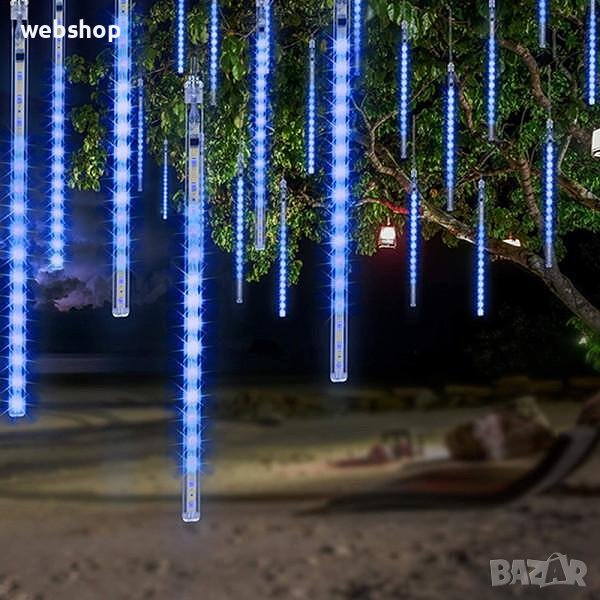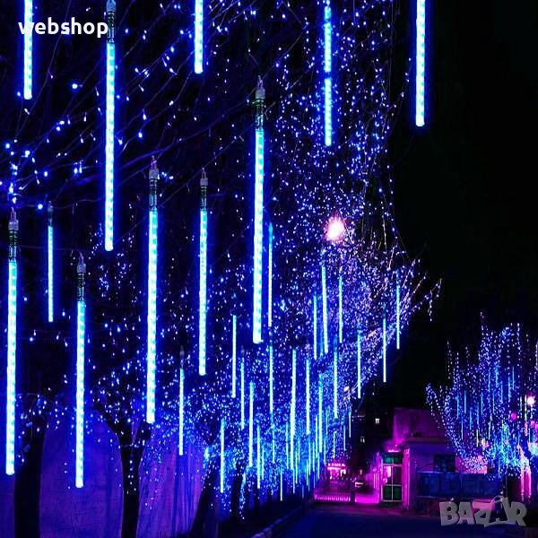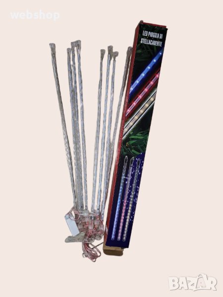 Светеща LED украса с ефект на падащ сняг и възможност за удължаване до 4 линии с обща дължина 12-14 метра. Подходяща за вътрешна и външна украса (степен на защита IP44). Продуктът е изработен с високо качество, като ефектните светлини се получават от светодиоди, което гарантира дългия му живот. Ако е необходима по-голяма дължина е необходимо да се подмени захранващия модул 5V DC с такъв отговарящ на използваната дължина. -бели висулки
