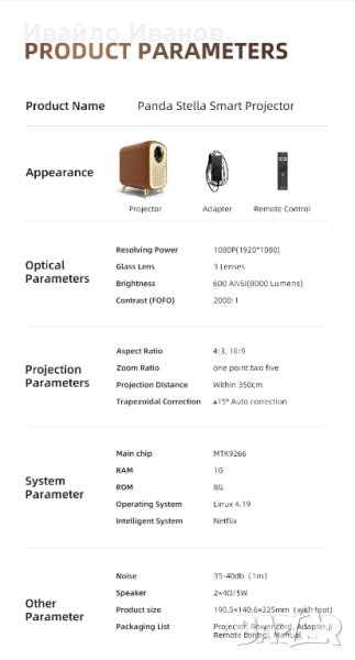 още инфо има на снимките, както и на сайта на производителя: PANDA Stella-N proyector