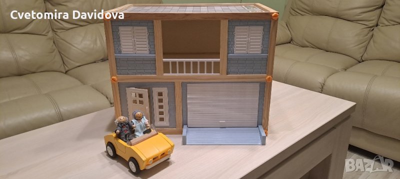 Нова дървена къща с кола и два фигурки баба и дядо. Никога не е играна с нея. Децата така и не й обърнаха внимание.