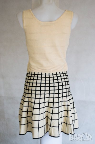 Елегантна бежова рокля с черно каре марка Atixo L/XL