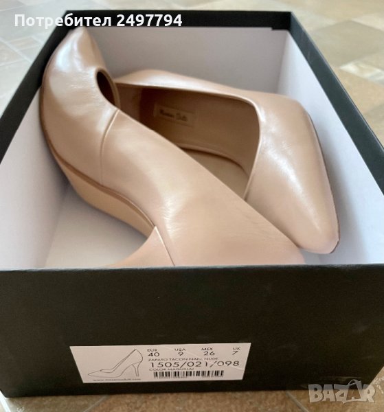 Нови елегантни обувки Massimo Dutti, естествена телешка кожа, в оригинална кутия, номер 40, цвят телесен