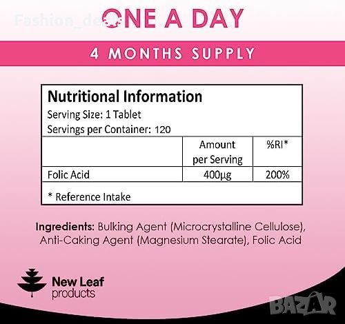 - Фолиева киселина с висока концентрация - 400 мкг