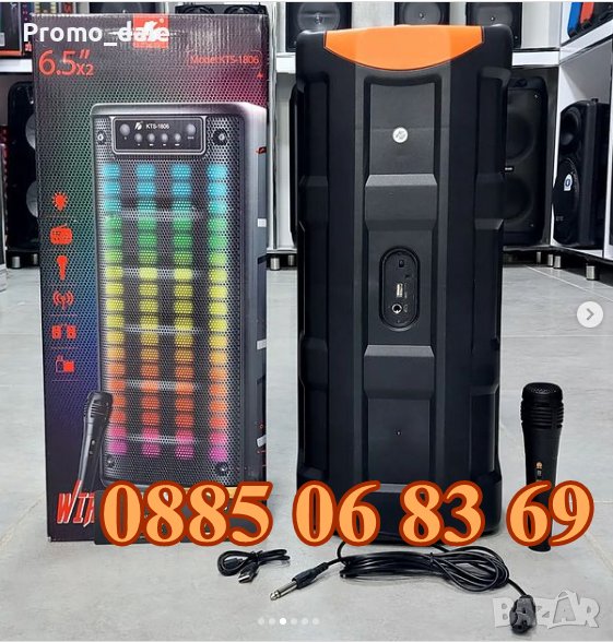 Двойна Караоке тонколона 2х6.5" KTS-1806, преносима колонка с Блутут, радио, жичен микрофон