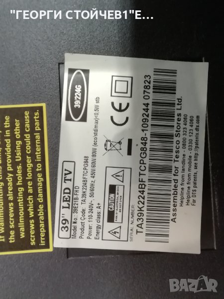 Technika 39E21B-FHD TP.MSD306.P72 L390H1-1EE V390HJ1-CE1 V390HK1-LS1-TREM4 V390HJ1-LE1 Rev.C1 → Обява 42553328