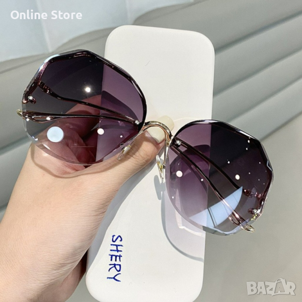 Дамски полигонални слънчеви очила без рамки + калъфче → Обява 42554334