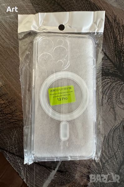 - До тях прозрачния с MagSafe зареждане и под него тъмнозеления /продаден/ с лого са за Iphone 13 pro