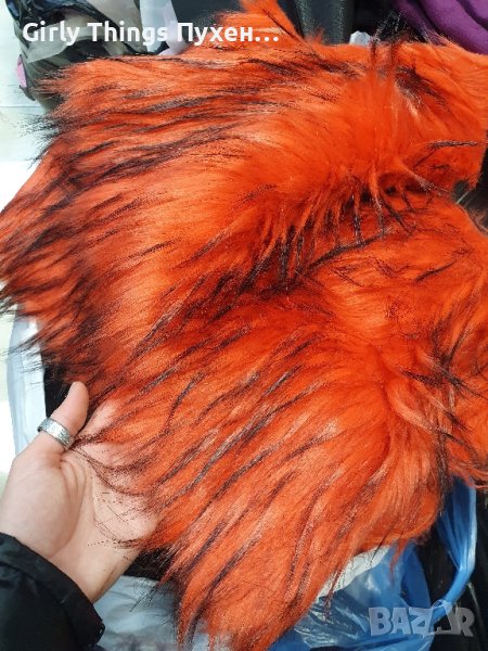 Оранжев плат от еко косъм , дълъг косъм с черни връхчета.