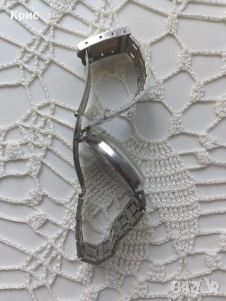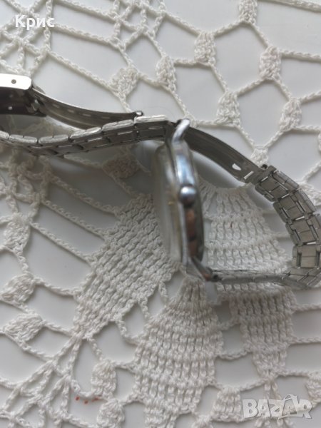Часовникът е тестван и преминал профилактика. Поставена му е нова метална верижка. Часовникът фукнционира отлично, като коронката за сверяване също работи.