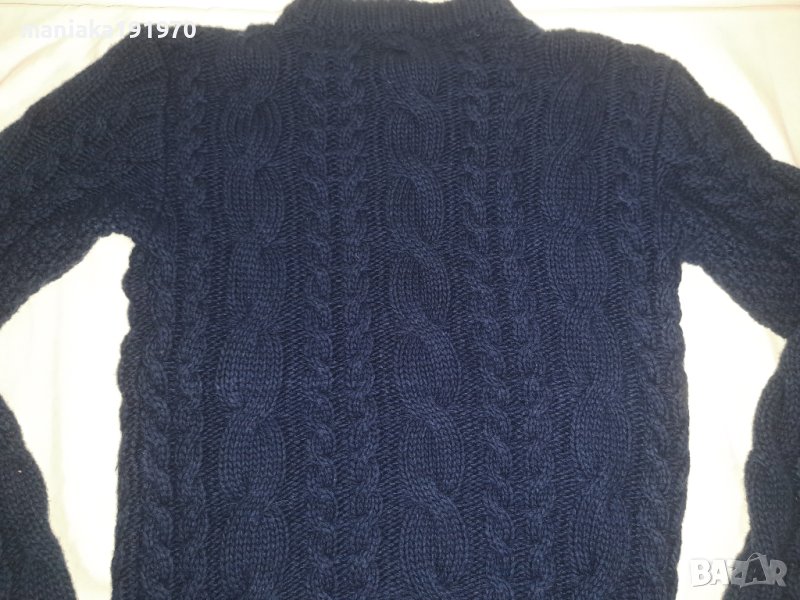 Пуловерът Wool Blend Cashmere е дреха с несъмнена елегантност. Неговият кабелен и ацтекски ромбичен дизайн, изработен от дебела плетка, придава на пуловера изтънчен и елегантен вид. Изработен от 90% мериносова вълна и 10% кашмир, този пуловер гарантира несравнимо комфортно изживяване. Мериносовата вълна предлага естествена топлина и дишане, а кашмирът придава нотка лукс и мекота на дрехата. Независимо дали го носите през студените зимни дни или през по-меките есенни дни, винаги ще се чувствате обгърнати в прегръдка на топлина и комфорт.Редовната кройка на пуловера осигурява удобно прилягане, прилепвайки идеално към тялото без ограничения. Дългите ръкави предлагат допълнително ниво на топлина и защита от елементите.Цвят тъмно синьо,като на първите снимки.В много - добро състояние Произведено в Италия