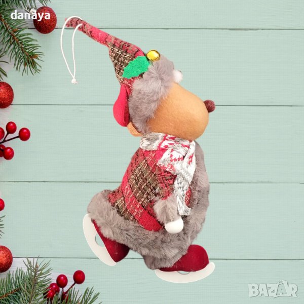 Коледна фигурка, която има въженце за закачане на коледната елха, на стена, врата, или предмет. Коледна украса за окачване еленът Рудолф със звънче на шапката си. Симпатичен коледен декор, украса за дом или офис. Коледна играчка, изработена от текстилни материали.