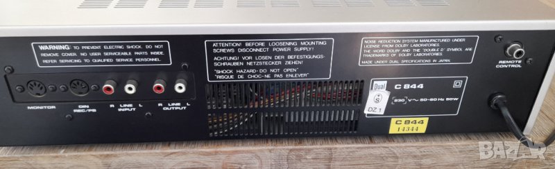 Дек Dual C844 3 Head 2 Speed 2 Motors Dual capstan S.N.14344 Лична колекция! Профилактиран, изключително запазен лицев панел! ОТКАЗ ОТ ОТГОВОРНОСТ: АКО НЕ Е ПОСОЧЕНО В ОБЯВАТА ИНАЧЕ: 1. Не приемам замени, поради което моля не ме занимавайте излишно с оферти, на които няма да отговоря. Няма да водя никакви разговори на тема доверие в предлаганите от мен продукти или претенции на други и моля съмнителните хора да се въздържат от покупки. 2. Изложените за продажба продукти са мои, използвани са и съм ги пуснал на пазарни цени, за да ги продам възможно най-бързо. Всяко намаление на цената ще бъде направено само при условия на закупуване на няколко продукта от моята оферта. 3. Транспортните разходи и възстановяването на парите към куриера се поемат изцяло от купувача и не са включени в цената на продукта. Като правило, поради липса на време, не изпращам по куриери. Лично предаване се извършва само във Варна (освен ако не е договорено друго). Поръчки, които не са потвърдени по телефона, няма да бъдат изпратени. 4. За сигурност на данните ще отговоря само ако съобщенията са изпратени от акаунт, принадлежащ на този сайт. Ако нямате акаунт, моля създайте си. Допълнителна информация за всеки продукт може да бъде изпратена при поискване. 5. За обявените за продажба продукти направих снимки, отразяващи реалното им състояние. Продуктите се продават във вида на снимките и в състоянието им. Не използвам снимки свалени от Интернет. 6. Всички технически подробности за продукта, освен посочените в обявата, можете да намерите в Интернет, на страницата на производителя. Продуктите са тествани предварително, така че при директна продажба няма да се тестват и няма да се издава гаранционен лист (освен ако не е посочено друго). 7. Преди да направите поръчка, моля, прочетете внимателно това съобщение и се уверете, че сте го разбрали напълно и че сте решени да купите, за да избегнете всякакви неприятни ситуации. Не изисквайте резервация на продуктите, защото тя няма да бъде предоставена, продажбата се извършва на принципа „първи дошъл, първи обслужен“. 8. Поради новите правни разпоредби, тази продажба изключва всякаква гаранция и обратно изкупуване на артикула. Това е частна продажба, следователно не мога да поема никаква гаранция според новото право на ЕС. Благодаря Ви за гледането и разбирането!