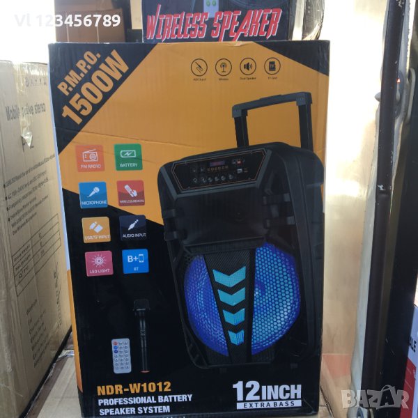 Караоке тонколона 12 инча NDR W1012 с безжичен микрофон