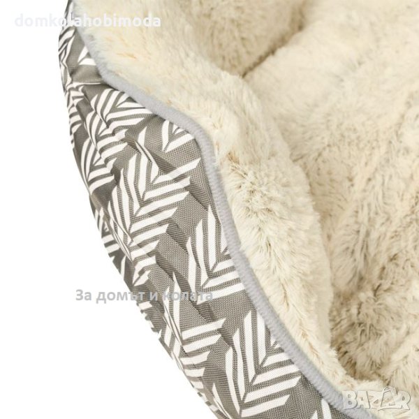 Кучешко легло правоъгълно с пухкав плат бежово сиво 70x65x18 см Описание - Характеристики Правоъгълно кучешко легло с бежова пухкава козина отвътре и сиво отвън, изработено от водоустойчив материал с бели шарки. Има неплъзгащо се дъно. Подходящ за използване на закрито. Цвят Сиво бежово Материал на продукта Полиестер Дължина x Ширина x Височина 57x52x14 см
