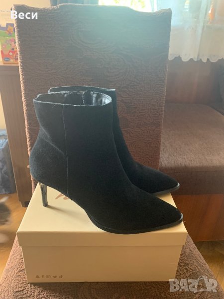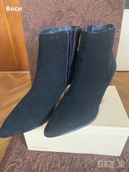 Чисто нови черни боти от набук с височина на тока 7 см.