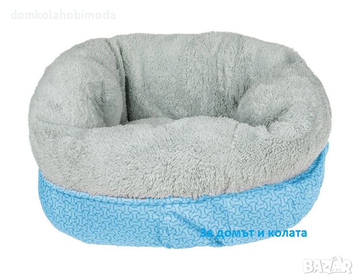 Описание - Характеристики Кръгло кучешко легло със сива пухкава козина отвътре и меко синьо отвън с шарки на кости. Има неплъзгащо се дъно. Подходящ за използване на закрито. Цвят Сиво Синьо Материал на продукта Полиестер Диаметър x Височина 50х25 см