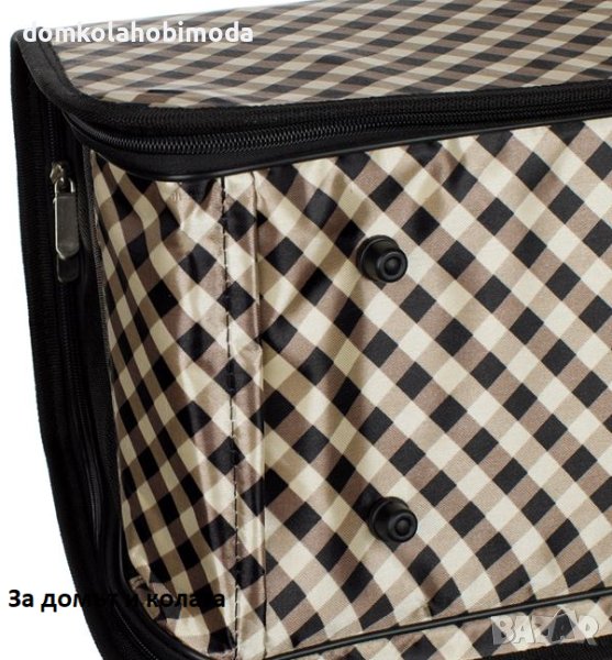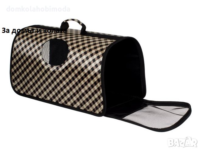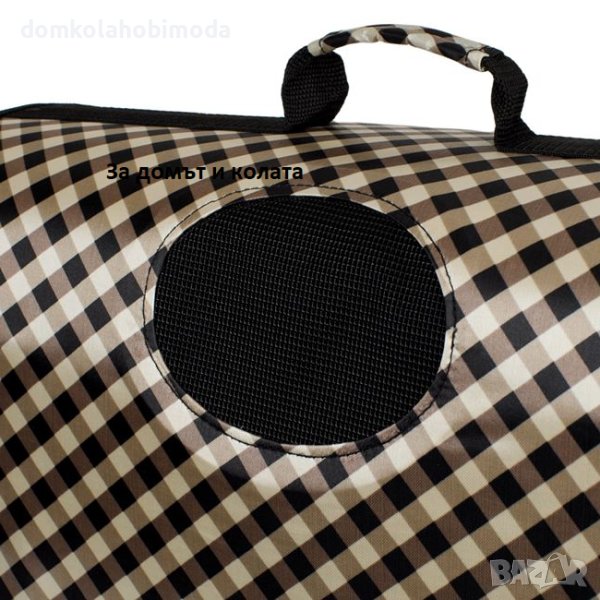 Описание - Характеристики Овална чанта за носене на домашни любимци в бежово черно с шарка на каре, с един вход с метален защитен цип, има дръжка за лесно пренасяне, като е проектирана да има достатъчна вентилация и да поддържа хладно. Цвят Черно бежово Материал на продукта Метален полиестер Максимално тегло 3 кг Дължина x Ширина x Височина 48х22х26см