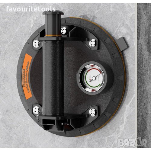Товароносимост 200 кг – вакуумната вендуза издържа до 200 кг. Поради това позволява сигурна и безопасна работа при преместване на тежки стъклопакети, плочки, керемиди, плочи, стъкла, огледала, прозорци и други деликатни материали без риск от повреда.