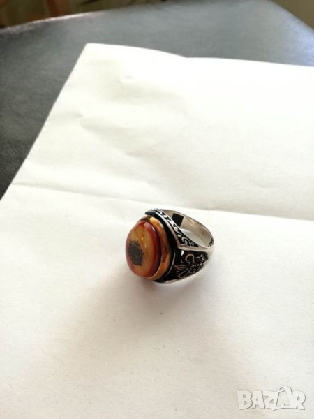 Масивен сребърен пръстен със Звездата на Давид, изобразена върху натурален камък. Пръстена е с проба на среброто 925, уникат,ръчна изработка.Диаметър на халката 21 мм.