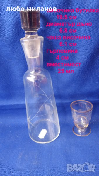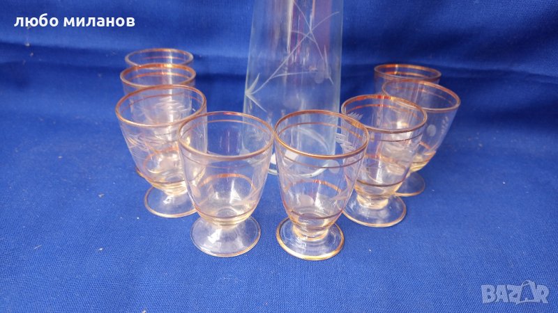 Стар ракиен комплект от 8 чашки и бутилка с тапа → Обява 42564066