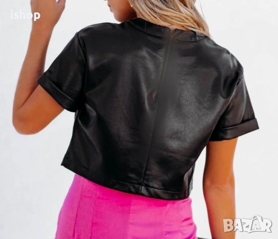 Къса Блуза Имитация На Кожа → Обява 42565470