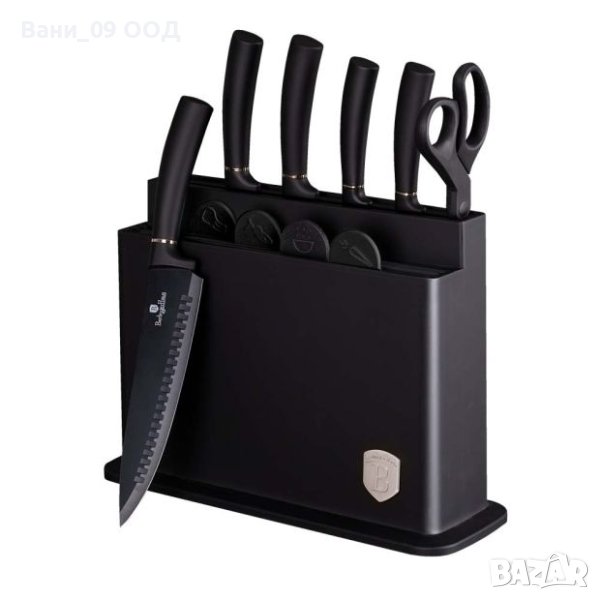 Един по-нов, но не по-малко впечатляващ кухненски комплект ножове с поставка, с който Berlinger Haus не изневерява на своя отличителен стил! В отговор на най-взискателните кулинари, сетът е изцяло с професионални показатели, макар и предназначен за домакинството. Вниманието е привлечено първо от невероятния дизайн и модерното, неустоимо комбиниране на драматично черно с изискано сребристо. Черните остриета застават във вашата кухня елегантно и присъствено. Тази естетика е прецизно съчетана с наблягане върху всеки детайл в изработката, като не е пропуснат нито един елемент, отговарящ на най-висок клас домакински прибори.