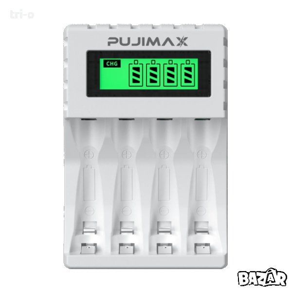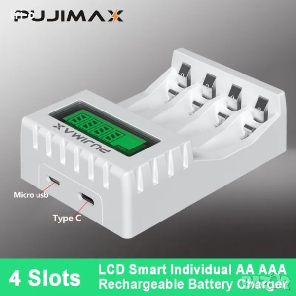PUJIMAX 4 слота 1.2V интелигентно адаптер зарядно устройство за NiCd NiMh батерии LCD дисплей за AA/AAA.