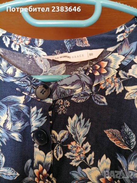 Дамска рокля до коляното, вискоза, номер 50, марка LCW, обличана 1 път по повод. При интерес ще дам размери. Материята е 100 % вискоза, дължина 94 см., гръдна обиколка до 132 см.