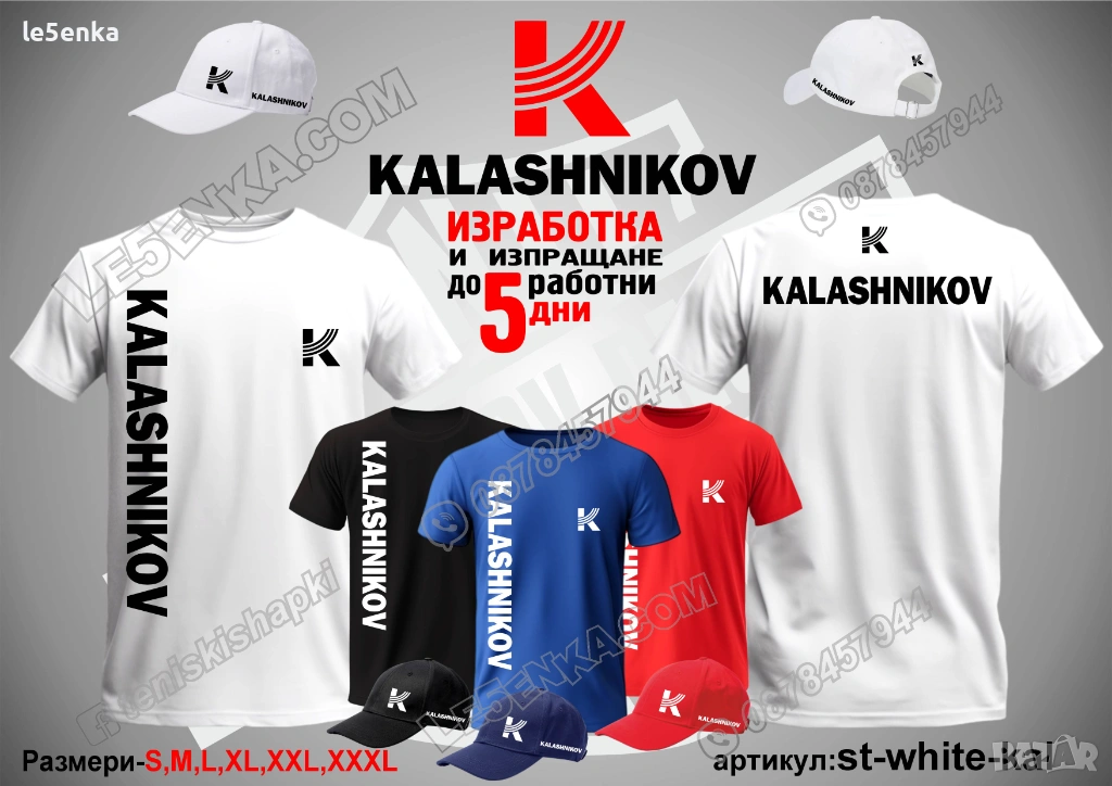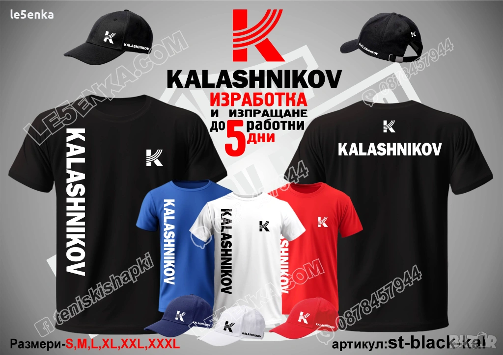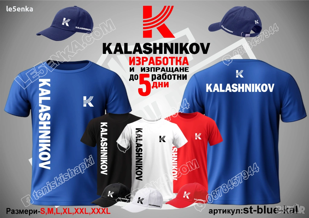 Посочената цена е за шапка и тениска комплект. Само шапка - 18 лв. ,а само тениска - 32 лв. Тениските са изработени от качествена памучна материя - различна номерация и цветове - черен, син, червен и бял. Шапките са памучни с метален клипс или коланче за регулиране - тип бейсболни. Последната снимка в обявата е на таблица с размери за тениските. Изпращаме по Еконт.