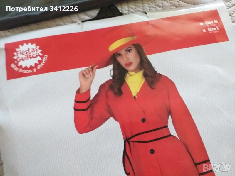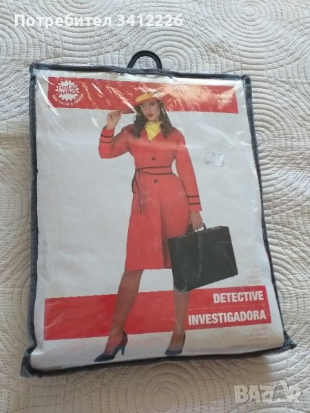 Нов елегантен дамски костюм за Halloween , дамски детектив . Шапка , шалче и рокля тип шлифер . Нов , размер L