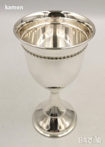 Ръчно изработен сребърен бокал със зръчест орнаментен обръч