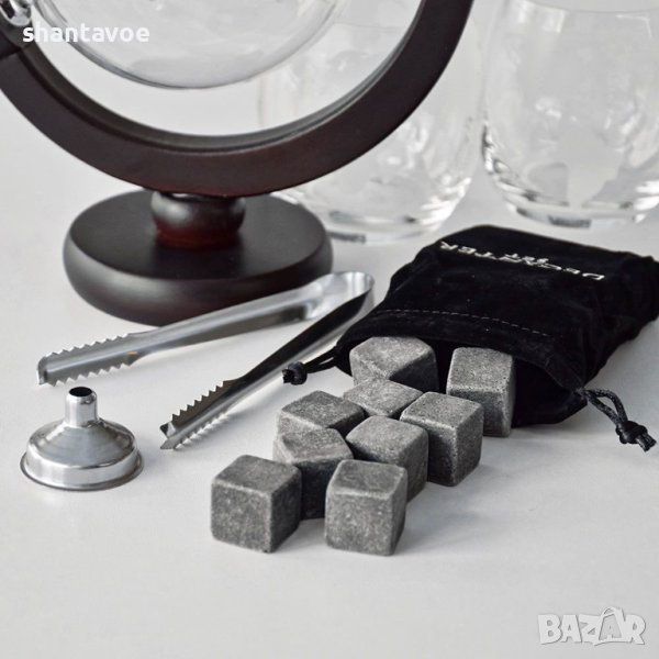 Сет за уиски със стъклен декантер глобус, чаши и камъни за охлаждане