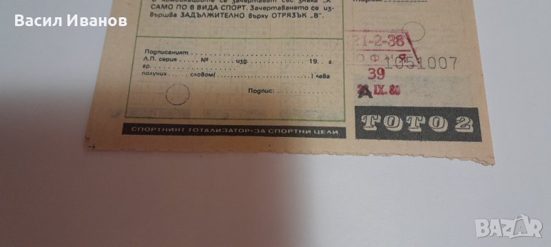 Фиш от ТОТО 2 1980 г. САМО ЗА КОЛЕКЦИОНЕРИ!!! → Обява 42576220
