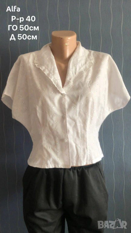 Стилна бяла риза с къс ръкав → Обява 42576891