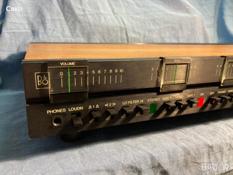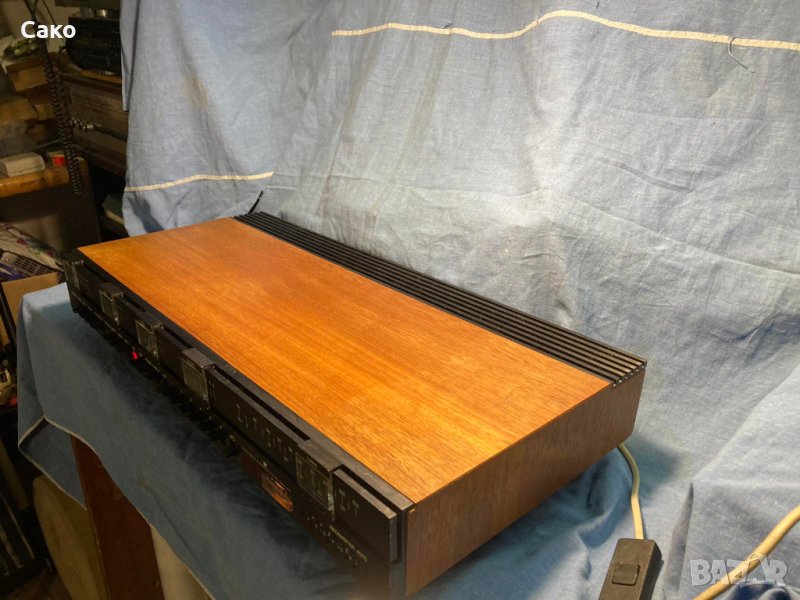 Продавам "по-големия брат" на предлагания от мен в друга обява Beomaster 3000, а именно моделът 4000. Той е по-мощен и по-трудно откриваем спрямо него и ако се разровите в нета, ще прочетете доста позитивни мнения за "музикалното представяне" на тези 2 ресивъра? Солиден като изработка и звучене, въпросния Beomaster 4000 е в добро визуално и техническо състояние и доколкото е показателно от снимките е бил грижовно съхраняван през годините. Притежава множество корекции, както на предния панел, така и отдолу и работи безпроблемно на радио, CD плеър и грамофон. Този модел е проектиран и да озвучава помещението посредством 2 чифта колони - 2 по-големи предни и 2 по-малки задни, подсилващи музикалното изживяване, а в наши дни вероятно и телевизионно такова? Без да се вглеждам внимателно, не забелязах следи от "човъркане", а показателно за автентичното му състояние е, че отвътре на капака все още стои ремонтната му схема. И все пак продаваният от мен радио-усилвател не е перфектен. Детайлен преглед показа, че копчето за включване/изключване не работи, затова е монтиран външен ключ... Лампите на FM тунинга не светят и вероятно са изгоряли или клеясали, а стрелката измерваща силата на радио сигнала не ми се струва достатъчно чувствителна, макар че това бяха моите наблюдения направени с парче тел вместо антена...