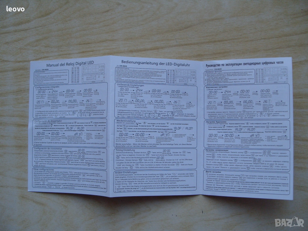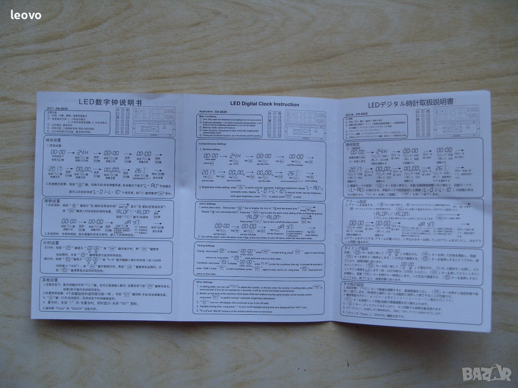 Голям електронен часовник DS-6629 с дистанционно управление, дата, термометър, таймер и аларми