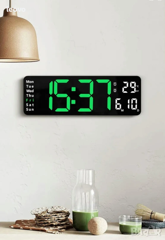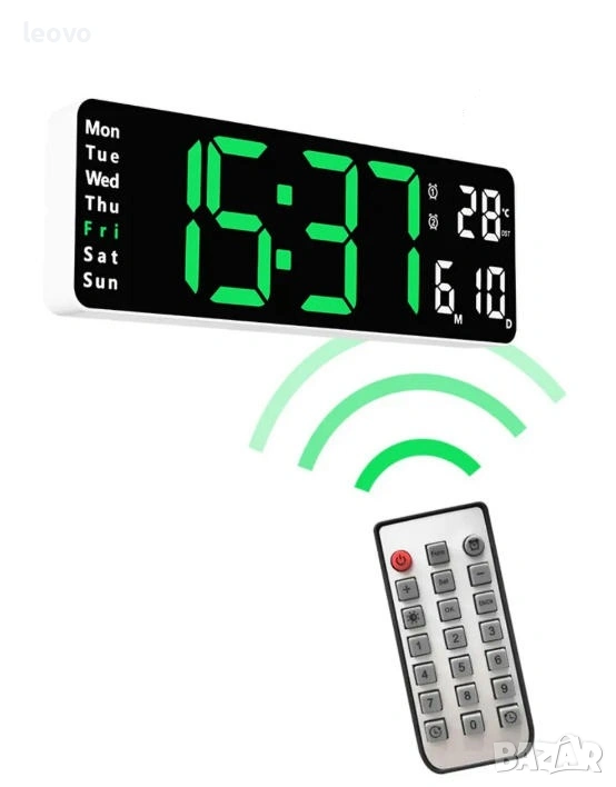 Предлагам голям електронен стенен часовник с термометър и дистанционно управление.