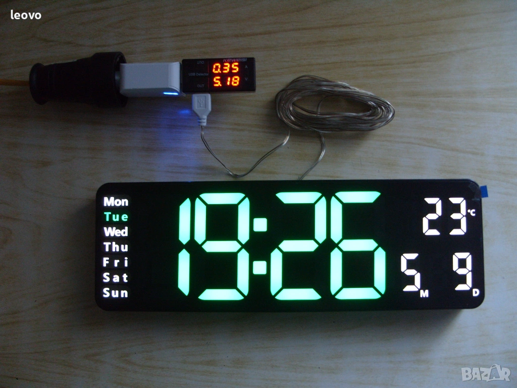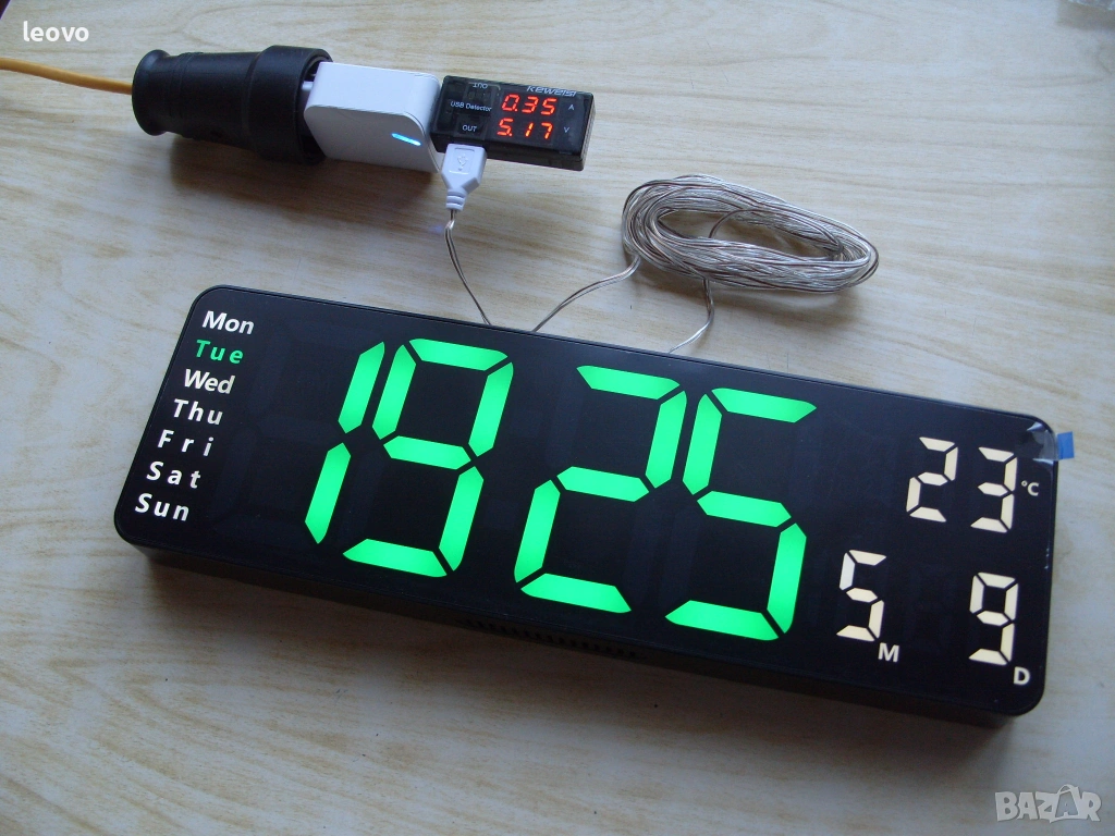 Часовникът се захранва от AC 220V/5V-1A адаптера, например: от зарядното на телефона (не е включен в комплекта).