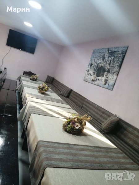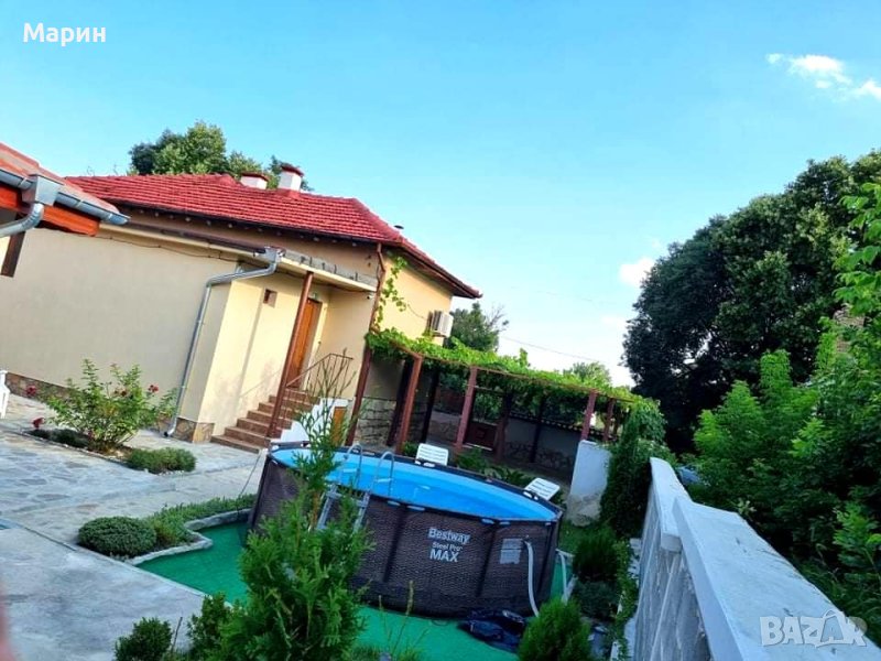 Къщата е разположена на площ от 1990кв.м. от която голямо дворно място по вече от 1 дка, с няколко овошки и голям кладенец иззидан с бетонови пръстени. Намира се в централната част на с. Мадара на 2 км от Паметник Мадарски Конник в близост магазини, заведения, училище, детска градина . Основната къща се разполага на 113км2 с два отделни входа. Състои се от 4 обзаведени и климатизирани спални помещения с ТV,гардероб,скрин,спални легла и др. 2 обзаведени бани със санитарен възел. Просторен коридор, който води до всички помещения–три тройни спални и една двойна спалня. Под тях се намират две избени помещения едно голямо и още едно по малко с отделни входове. Непосредствено зад основната къща се намира голямо барбекю, голяма механа с топла връзка към кухня оборудвана със всички необходими ел. уреди и още едно спално помещение разположени на 104 м2(квадратурата е без барбекюто) . Площадково пространство около 100м2, озеленена градина около 40м2, асмалък ,постройка около 15м2 която се ползва за съхранение на дърва в момента. Външна каменна чешма, тоалетна, открит гараж, удобен голям паркинг пред къщата. Къщата е с видео наблюдение. Тел 0899854529